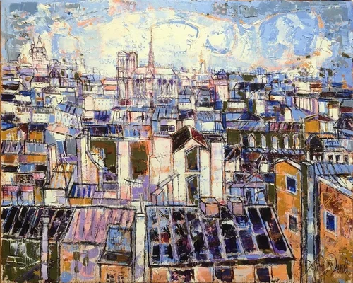 L'envol du bleu à Montmartre 50x61 cm Huile sur toile